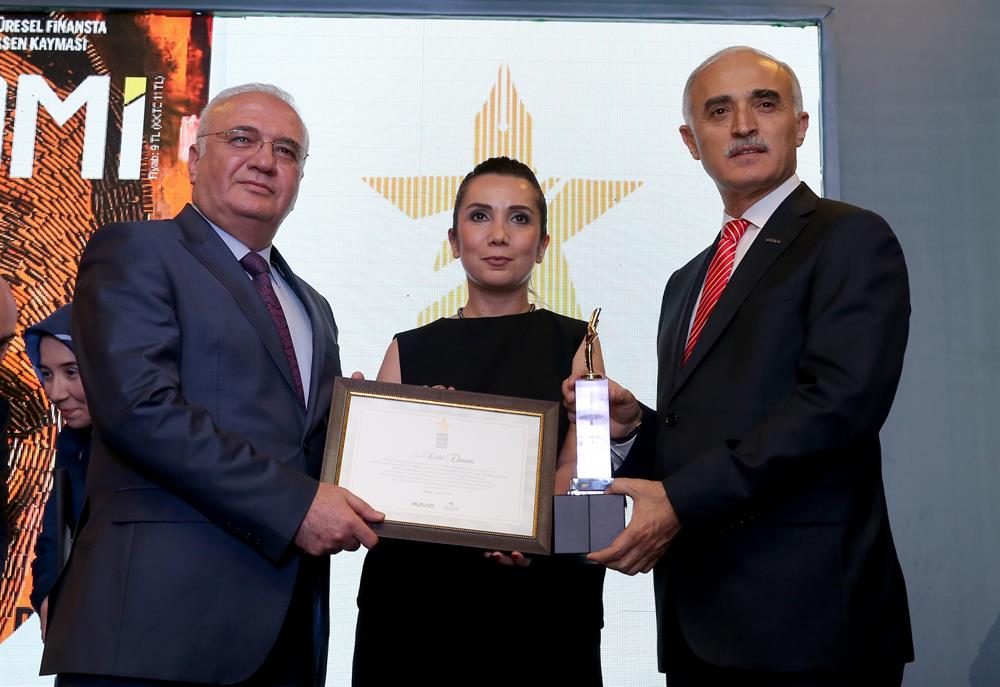 adına derginin Yazı İşleri Müdürü Sinem Köseoğlu ödülü Ekonomi Bakanı Mustafa Elitaş ve MÜSİAD Başkanı Nail Opak'ın elinden aldı.