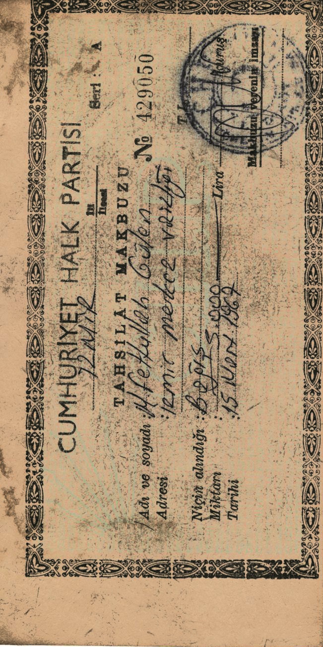 17 ve 25 Aralık darbe sürecinden sonraki seçimlerde CHP ile işbirliği yapan Fethullah Gülen'in 1967'de CHP'ye yaptığı bağışın orijinal makbuzuna da Yeni Şafak ulaştı. Bu bağışın Gülen'in 6 aylık vaizlik maaşına denk geldiği ortaya çıktı. O dönemler maddi sıkıntılar yaşadığını kendi yazılarında ifade eden Gülen'in 5 bin liralık bağış yapması adeta karanlık ilişkilerinin ispatı niteliğinde. O dönemde İzmir Müftülüğü'nde vaiz olarak görev yapan Gülen, İsmail Durak Ataay'ın “Türkiye'de elli yıllık maaş ve ücret uygulaması" isimli makalesindeki bilgilere göre aylık 774 lira alıyordu. Gülen'in vaizlikten düşük ücret almasına rağmen CHP'ye 5 bin liralık bağışı neden yaptığı akıllara soru işaretleri getiriyor. Ayrıca Gülen'in yaptığı bağışta İzmir Merkez Vaizliği'nin kurumsal adını kullanması dikkat çekti.
