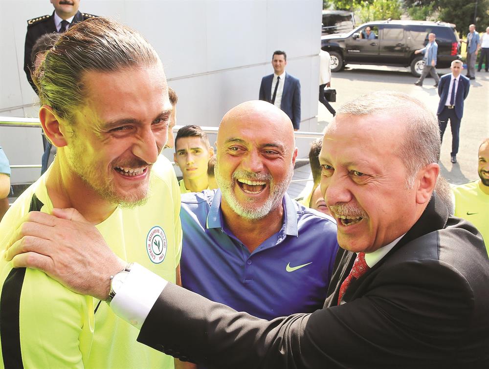 Çaykur Rizespor Kulübü’nü ziyaret eden Cumhurbaşkanı Erdoğan’ı, Kulüp Başkanı Hasan Kemal Yardımcı, Teknik Direktör Hikmet Karaman ve futbolcular karşıladı. Erdoğan, basına kapalı gerçekleştirilen ve yaklaşık 40 dakika süren görüşmenin ardından Giresun’a geçti.