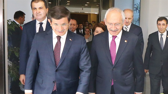 Öztrak ile tokalaşan Davutoğlu ve beraberindeki heyet, daha sonra Genel Başkan Kemal Kılıçdaroğlu ile görüşmeye geçti. CHP Genel Merkezi'nin 12. katında, basına kapalı gerçekleşen görüşme 14.15'te başladı. Koalisyon görüşmelerinde 1 artı 4 kişi olarak planlanan heyet, CHP'nin isteğiyle 1 artı 5 kişi olarak belirlendi. AK Parti heyetine Ankara Milletvekili Mücahit Arslan eklendi. CHP lideri Kılıçdaroğlu'na ise Genel Başkan Yardımcıları Haluk Koç, Selin Sayek Böke ve Faik Öztrak, İstanbul Milletvekili Akif Hamzaçebi ve Kılıçdaroğlu'nun danışmanlarından Rasim Bölücek eşlik etti.
