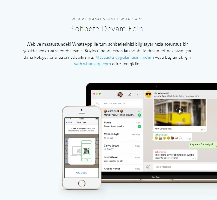 Web ve masaüstündeki WhatsApp ile tüm sohbetlerinizi bilgisayarınızla sorunsuz bir şekilde senkronize edebilirsiniz. Böylece hangi cihazdan sohbete devam etmek sizin için daha kolaysa onu tercih edebilirsiniz. Masaüstü uygulamasını indirin veya başlamak için web.whatsapp.com adresine gidin.