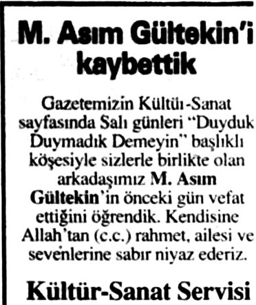 Sevgili Asım Gültekin de vadesini tamamladı.