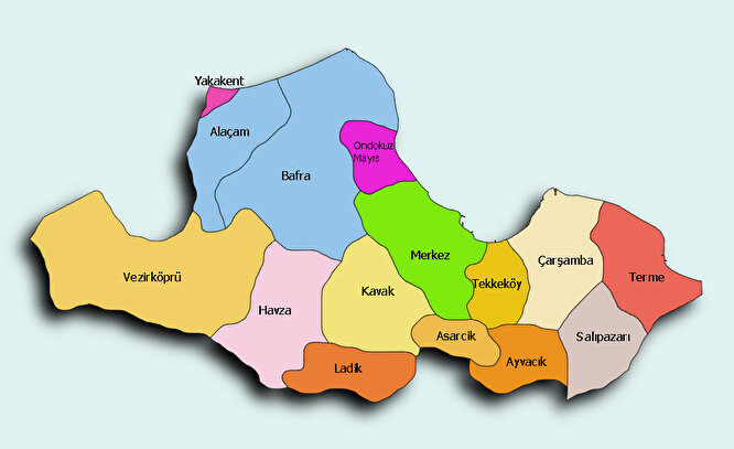 Büyükşehir unvanına sahip otuz ilden biri olan Samsun’un ilçeleri on yedi tanedir. Samsun ilinde bulunan ilçeler şu şekilde sıralanabilir: