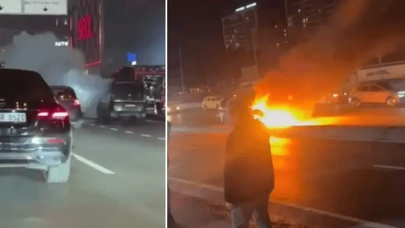 Esenyurt D-100 Karayolu'nda hafif ticari araç alev alev yandı