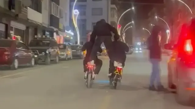 Elektrikli bisikletlerle tehlikeli yolculuk kamerada