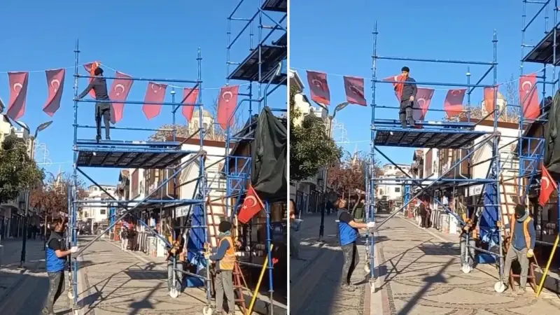 Edirne'de işçilerin Türk bayrağı hassasiyeti: Öperek kaldırdı