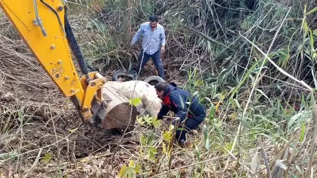 Hatay'da dereye düşen inek itfaiye ekipleri tarafından kurtarıldı