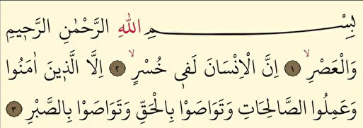 Vel asr. İnnel insane le fi husr. İllellezıne amenu ve amilus salihati ve tevasav bil hakkı ve tevasav bis sabr.