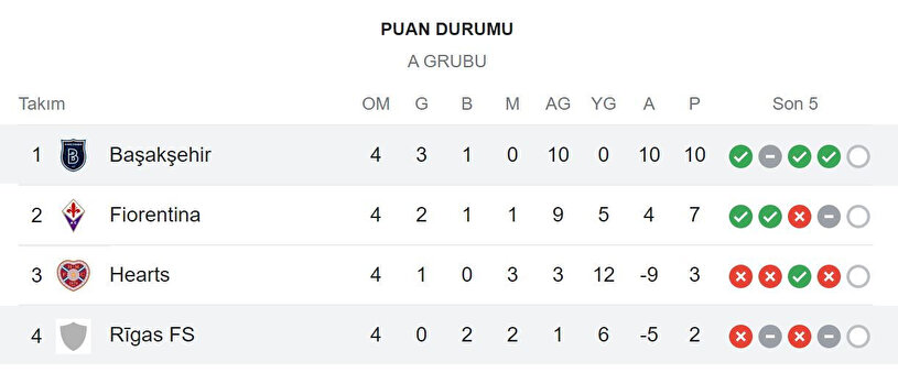 AVRUPA KONFERANS LİGİ A GRUBU PUAN DURUMU