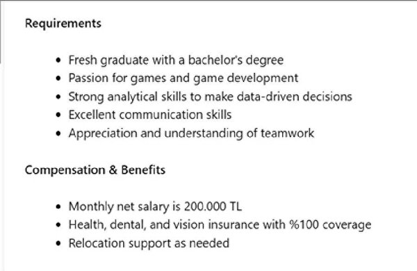 İstanbul merkezli bir oyun şirketi, sosyal medyada büyük ses getiren bir iş ilanıyla dikkatleri üzerine çekti. Yeni mezunlara yönelik açılan pozisyon için açıklanan maaş, yalnızca teknoloji dünyasını değil, tüm iş çevrelerini şaşkına çevirdi. Firma, genç yetenekleri bünyesine katmak için oldukça cömert şartlar sundu.