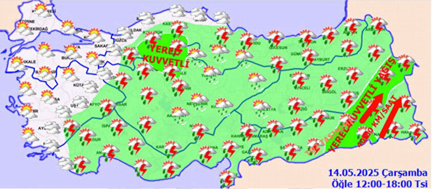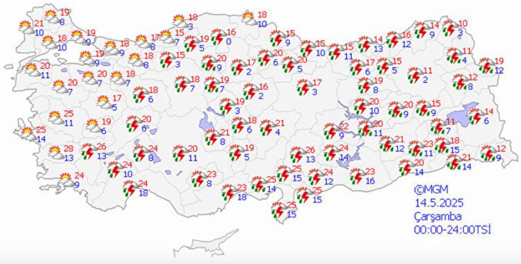 Meteoroloji Genel Müdürlüğü (MGM) 14 Mayıs Çarşamba günü için hava durumu tahminlerini paylaştı. Rapora göre 7 il için sarı alarm verildi. Güneydoğu Anadolu'da toz taşınımı da dikkat çekildi. İşte Meteoroloji il il hava durumu tahmini raporu.