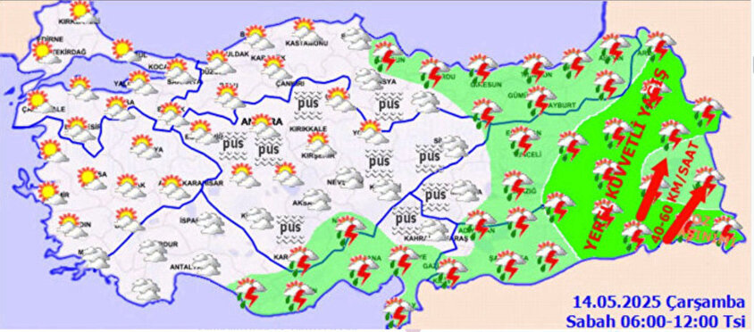Çok bulutlu, bu sabah ve öğle saatlerinde yerel olmak üzere sağanak ve gök gürültülü sağanak yağışlı geçeceği tahmin ediliyor. Yağışların, bu sabah saatlerinde yerel olarak kuvvetli olması bekleniyor.