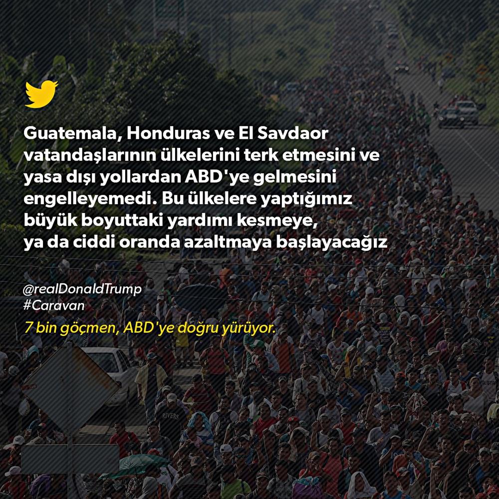 13 Ekim'de Honduras'tan yola çıkan göçmen kafilesine Guatemala ve Meksika'dan da katılanlar olunca 7 bin kişiyi bulan büyük kalabalık ABD sınırına dayandı. Göçmenleri almamak için üst düzey güvenlik önlemleri talimatı veren Trump, Meksika sınırını kapatmakla tehdit etti ve bu ülkelerin yönetimlerine seslendi: "Siz bu işi beceremediniz, size yaptığım mali yardımları keserim!"