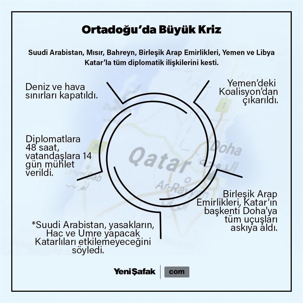 Suudi Arabistan Resmi Haber Ajansı SPA'da yayınlanan Dışişleri Bakanlığı açıklamasında, ülkenin milli güvenliği için Katar ile tüm diplomatik ilişkilerin kesildiği, deniz ve hava sınırlarının da kapatıldığı bildirildi.