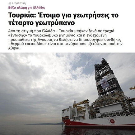 Yunanistan merkezli medya kuruluşları, sondaj gemisinin görev yerinin Akdeniz olabileceğine işaret etti. Haberlerde, "Doğu Akdeniz'de bir meydan okumanın habercisi" denildi. "Yunanistan boyun mu eğiyor?" başlığıyla sondaj gemisinden bahseden Yunan gazeteleri, Atina'nın olası senaryolar için planları olduğunu ifade etti.