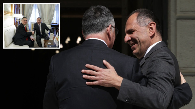Yunanistan Dışişleri Bakanı Giorgos Gerapetritis, İsrailli mevkidaşı Gideon Saar'ı Atina'daki Dışişleri Bakanlığı'nda karşıladı.