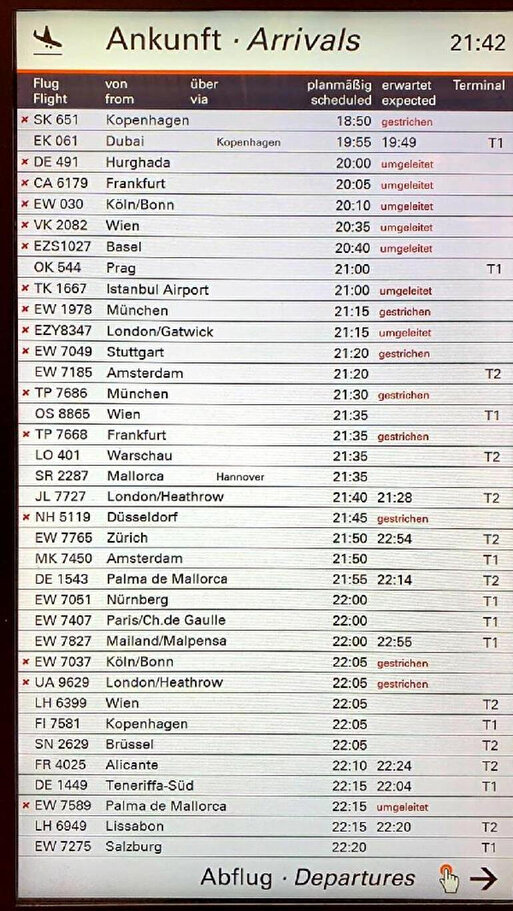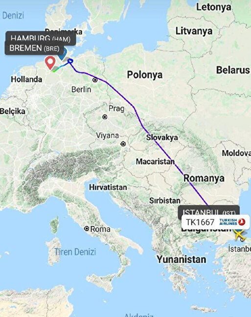 Öte yandan THY'nin TK1667 sefer sayılı İstanbul- Hamburg seferini yapan uçağı da havalimanının kapatılmasının ardından bir müddet Hamburg hava sahasında tur attıktan sonra Bremen'e inmişti. Saat 21.00 sıralarında Bremen'e inen uçağın yolcularının kara yolu ile Hamburg'a gönderileceği öğrenilirken, dönüş seferi olarak planlanan Hamburg-İstanbul seferi de iptal edilmişti.