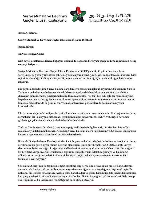 Suriye Muhalif ve Devrimci Güçler Ulusal Koalisyonu da