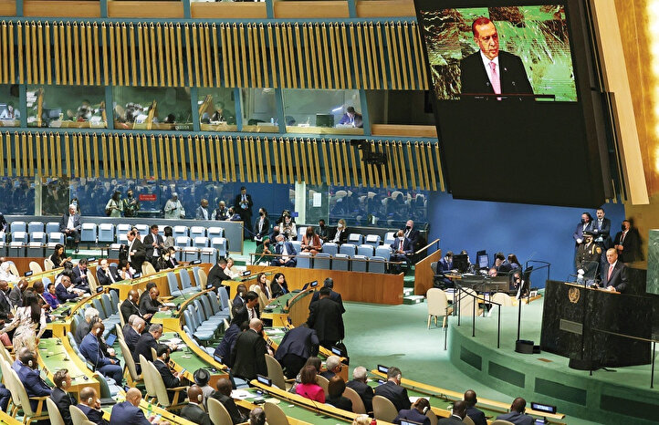 Rusya ve Ukrayna savaşının ardından çözüm umutları için gözlerin çevrildiği Birleşmiş Milletler Genel Kurul Salonu'nda dünyaya hitap eden Cumhurbaşkanı Tayyip Erdoğan, “İki taraf için onurlu çıkış” çağrısı yaptı. Tahıl koridoruyla sağlanan mutabakata vurgu yapan Erdoğan, “Tahıl arzının sürdürülmesinde kritik öneme sahip bu mutabakat, BM'nin son yıllarda imza attığı en büyük başarılardan biridir” dedi. Ege’de Yunanistan’ın mültecilere yönelik insanlık dışı uygulamalarını gündeme getiren Erdoğan, “Yunanistan Ege’yi mülteci mezarlığına çevirdi” diye konuştu. Erdoğan, Filistin sorunun çözümü için “Bölgedeki sorunun adil, kalıcı ve kapsamlı bir çözüme kavuşturulması için başkenti Doğu Kudüs olan bağımsız ve egemen Filistin devletinin kurulması dışında bir ihtimal yoktur” ifadelerini kullandı. Erdoğan, Türkiye’nin Azerbaycan ile Ermenistan arasında kapsamlı bir barış anlaşmasını imzalayacağını umduklarını sözlerine ekledi.