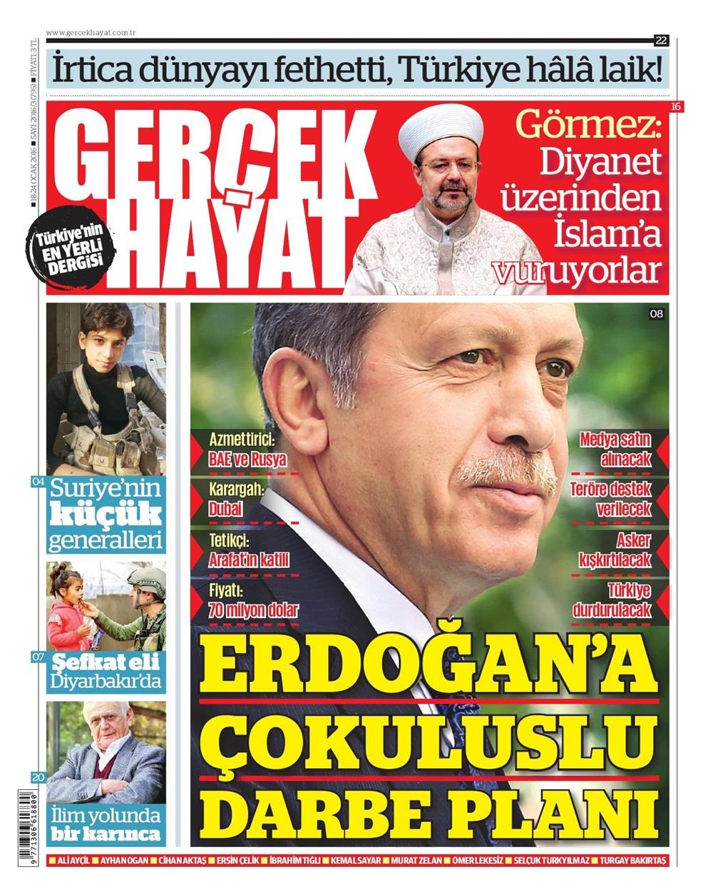 kapağıyla sayfalarına taşımıştı. Yaser Arafat'ın ölümünden sorumlu tutulan El-Fetih üyesi Muhammed Dahlan'a Erdoğan'ı devşirme işini ihale edildiği, ve bu hain plan için 70 milyon dolarlık bir bütçe ayrıldığı belirtilmişti. Müslüman Kardeşler'e yönelik olumlu politikası nedeniyle düşman bellenen AK Parti hükümetine zarar vermek için BAE'nin, Gezi Parkı eylemleri sırasında Dahlan üzerinden girişimlerde bulunduğu konuşulmuştu. Hatta Dahlan'ın, Mısır medyasına akıttığı parayla susturduğu ve bilerek İhvan'a karşı yayınlar yaptıldığı da o dönem konuşulan iddialar arasındaydı.
