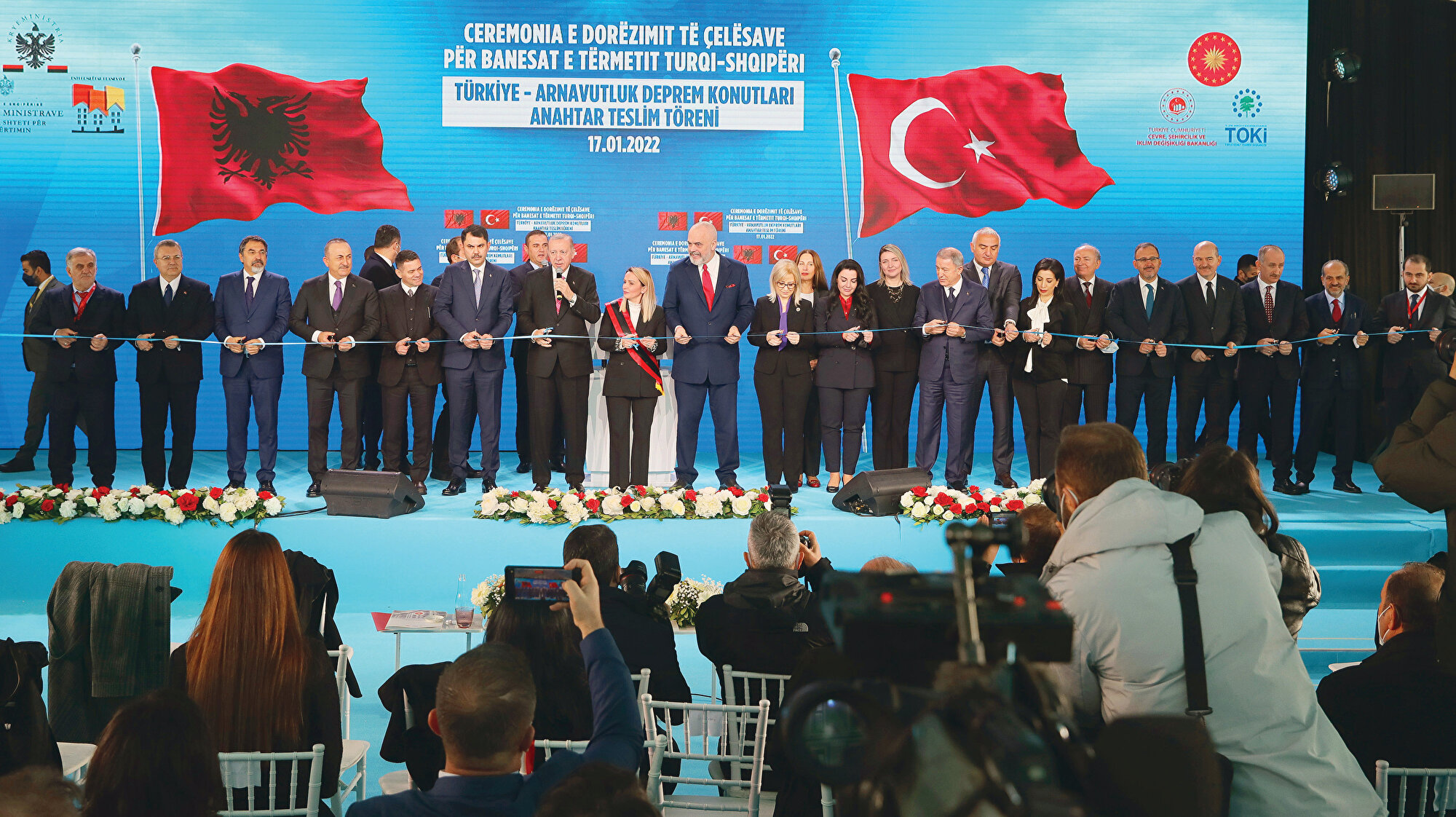 TOKİ’nin Arnavutluk’ta inşa ettiği 522 deprem konutu törenle hak sahiplerine teslim edildi. Laç kentinde 51 kişinin hayatını kaybettiği depremden sonra yardıma koşan ilk ülkenin Türkiye olduğunu hatırlatan Cumhurbaşkanı Erdoğan, “Şimdi de deprem konutlarının açılışıyla Türkiye-Arnavutluk dostluğunu taçlandırıyoruz” dedi.