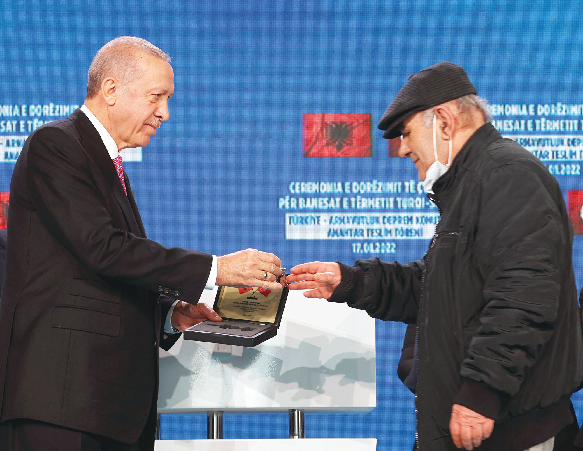 Cumhurbaşkanı Recep Tayyip Erdoğan, TOKİ adına Albayrak İnşaat tarafından Arnavutluk’un Laç şehrinde inşa edilen deprem konutlarının teslim töreninde konuştu.