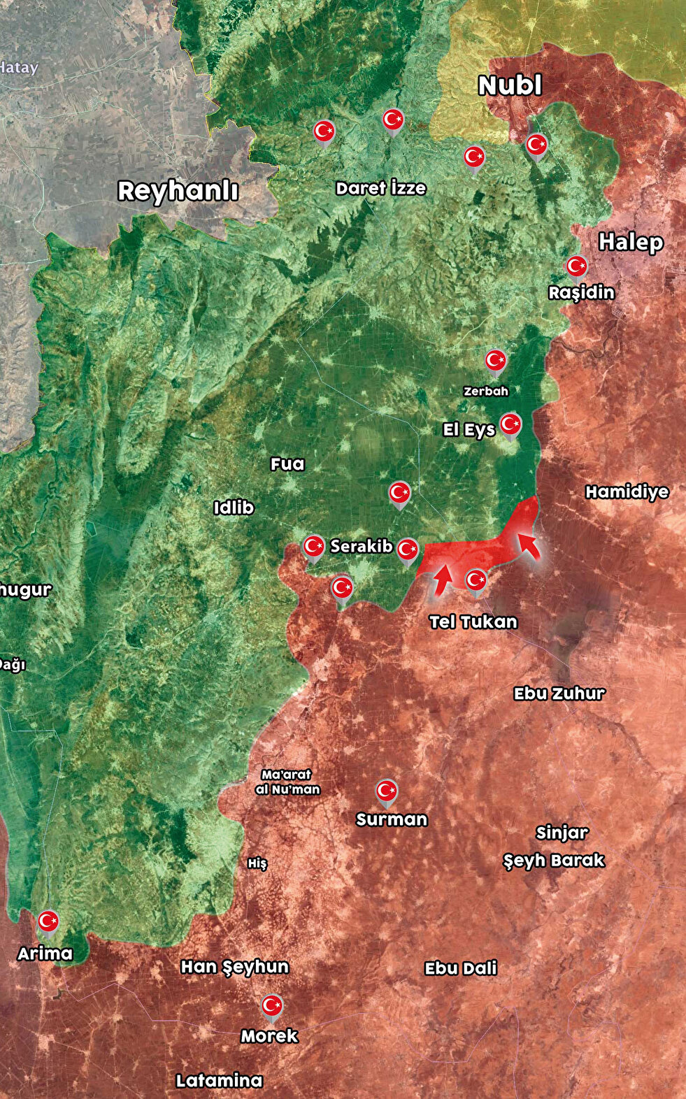 TSK’nın Trenbe’deki gözlem noktasını bombalayarak 7 asker ve 1 sivil görevliyi şehit eden Esed güçleri, Han Tuman’daki gözlem noktasını da taciz etti. Rejim hedeflerine misillemede bulunan TSK, Hama’daki bir helikopter üssünü de vurdu. Sivilleri katletmek için depolanan varil bombaları patlatıldı.