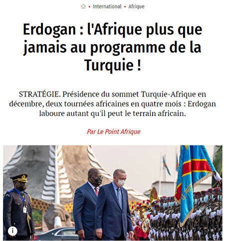 Türkiye'nin Afrika ile ilişkileri dünya basınında konuşulmaya devam ediyor. Fransız medya kuruluşu Le Point’de “Erdoğan: Türkiye'nin gündeminde her zamankinden daha fazla Afrika var” başlıklı bir haber yayımlandı. Yazıda şu ifadelere yer verildi: