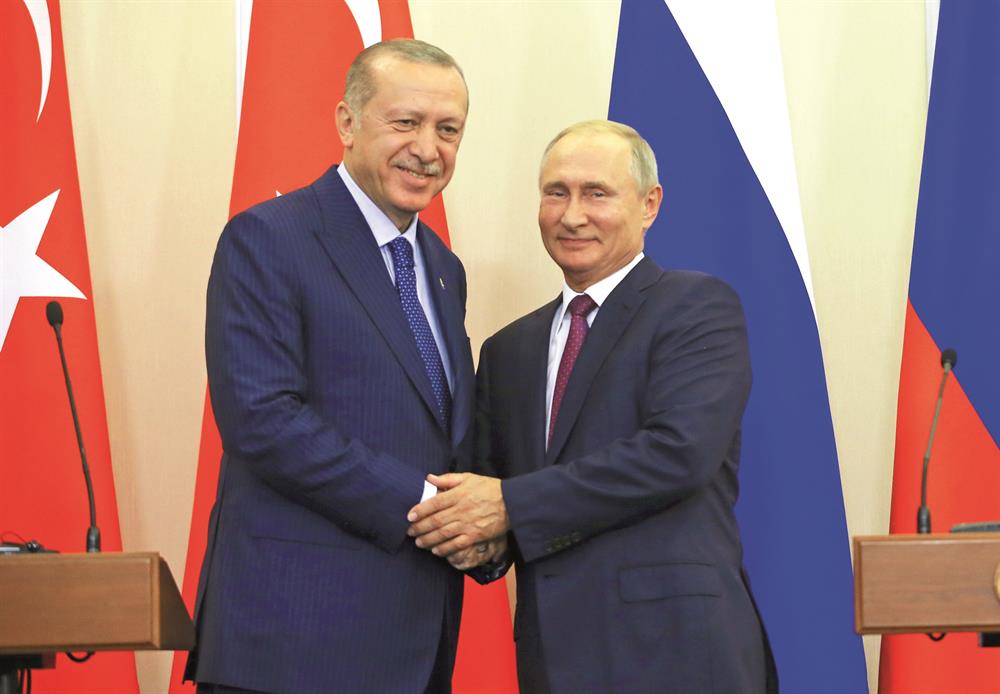 - “Biz hem Fırat Kalkanı hem de Zeytin Dalı harekatlarıyla bu yönde önemli adımlar attık. 4 bin kilometrekareden fazla bir alanı DEAŞ’lı ve PKK’lı teröristlerden temizledik. Bu bölgelere Suriyeli kardeşlerimizin güven içinde dönmelerini sağladık. Benzer adımların PYD-YPG terör örgütünün elinde bulunduğu diğer bölgeler için de atılması önem arz ediyor. Türkiye ve Rusya olarak arzumuz; Suriye krizinin çözüme kavuşturulmasıdır. Bu hedefe yönelik iş birliğimizi sürdüreceğiz. Hedefimiz tabii ki önce bir anayasanın oluşması, ardından orada demokratik bir seçimin gerçekleşmesi ve ondan sonra da Suriye halkının kendi gerçek demokratik iktidarına kavuşmasıdır.”