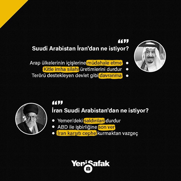 - "İki ülke arasında diplomasi kanalları yeniden kurulabilseydi, bu çok iyi olurdu ama bir uzlaşının İran'da özellikle Kasım Süleymani gibi 'sertlik yanlılarınca' kabul göreceğine inanmak zor. İran'da daha evvel ılımlı hükümetler, Suudi Arabistan'la ilişkileri normalleştirmeye çalıştı ancak başarısız oldu. İran eski Cumhurbaşkanı Rafsancani'nin gerilimi azaltma girişimleri, iki ülke içerisindeki sertlik yanlıları tarafından akamete uğratıldı."