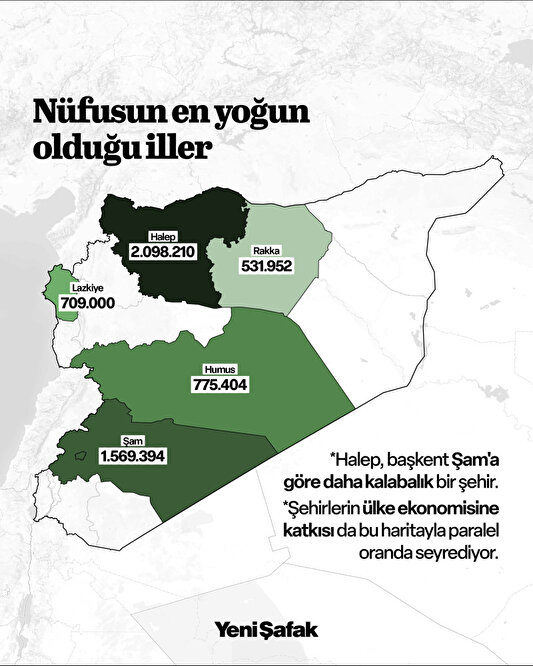 Başkent Şam'ı ise sırasıyla Humus, Lazkiye ve Rakka şehirleri takip ediyor. Bu şehirlerin