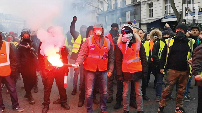 Fransa Cumhurbaşkanı Macron’un vaadleri sokaklara dökülen göstericileri ikna edemedi. 100 avroluk asgari ücret zammı içeren paketi göz boyama olarak gören sarı yelekliler, eyleme devam edeceklerini duyurdu. Fransız maliyesi de 10 milyar avroluk kaynak gerektiren vaatler için kara kara düşünüyor. Ülkede bir ayı bulan gösterilerde 4 bin 99 kişi gözaltına alındı.