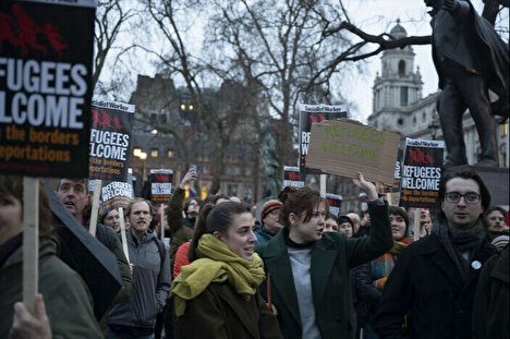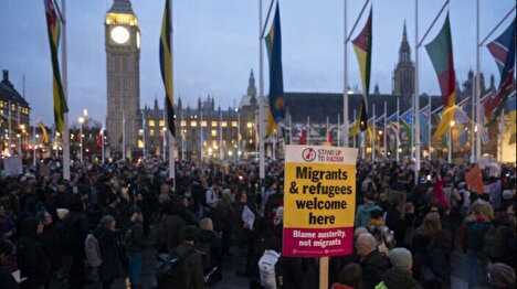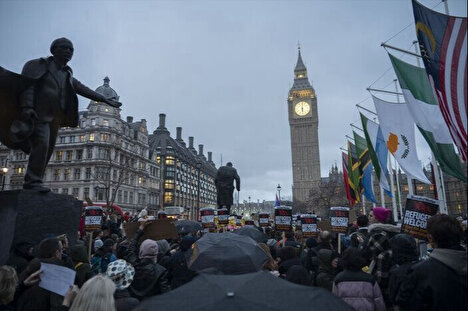 İngiltere hükümetinin düzensiz göçü engellemek için hazırladığı Yasa Dışı Göç Yasa Tasarısına karşı çıkan yüzlerce kişi, Parlamento meydanında toplanarak tepkisini dile getirdi.