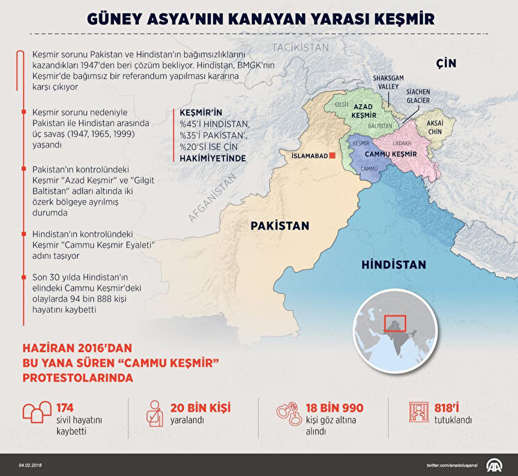 Öte yandan Hindistan İçişleri Bakanlığınca Cammu Keşmir'in bağımsızlığını savunan, aralarında bölgedeki liderlere ait hesapların da bulunduğu 8 Twitter hesabının kapatılması talep edildi.