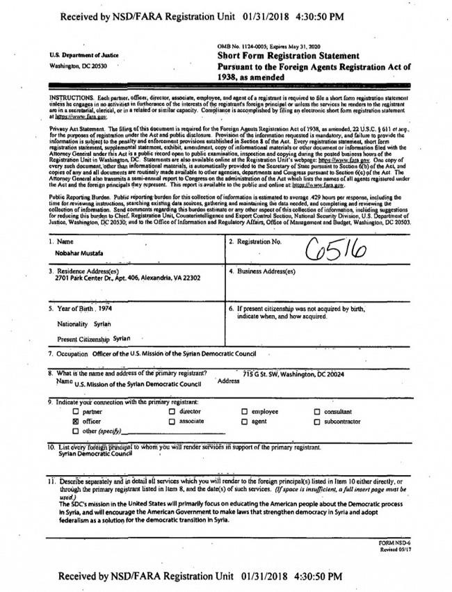 Terör örgütü PKK’nın Suriye kolu YPG’nin, Zeytin Dalı Harekatı’nın başlamasından sonra Amerika’da yasal faaliyetler yürütmek amacıyla, “Suriye Demokratik Konseyi” adı altında ABD hükümetine tescil başvurusu yaptığı ortaya çıkmıştı. TRT World’ün ulaştığı belgeler, bunu doğruladı. Aralarında YPG/PKK’nın sözde üst düzey yöneticisi Senam Mohamed’in de bulunduğu Ahed Al Hendi, Bassam Said Ishak ve Nobahar Mustafa, ABD’nin başkenti Washington’da ofis açmak için başvurmuş.