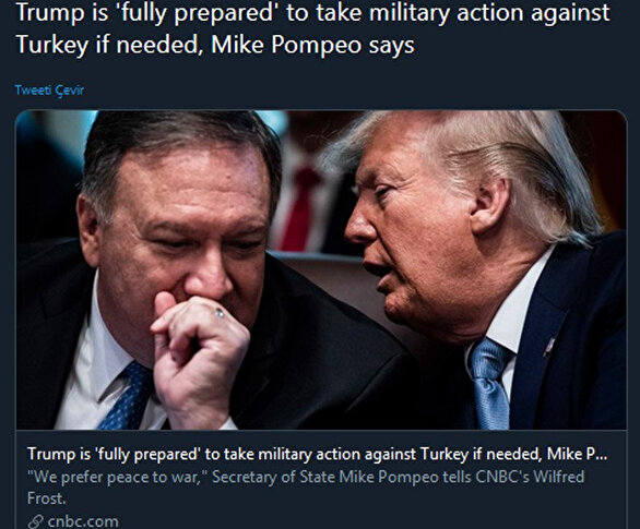 Amerika’nın en çok izlenen haber kanallarından biri olan CNBC, ABD Dışişleri Bakanı Mike Pompeo’nun, Trump’ın gerekli görülmesi durumunda Türkiye’ye karşı bir askeri harekât gerçekleştirebileceğini belirttiğini ileri sürdü.