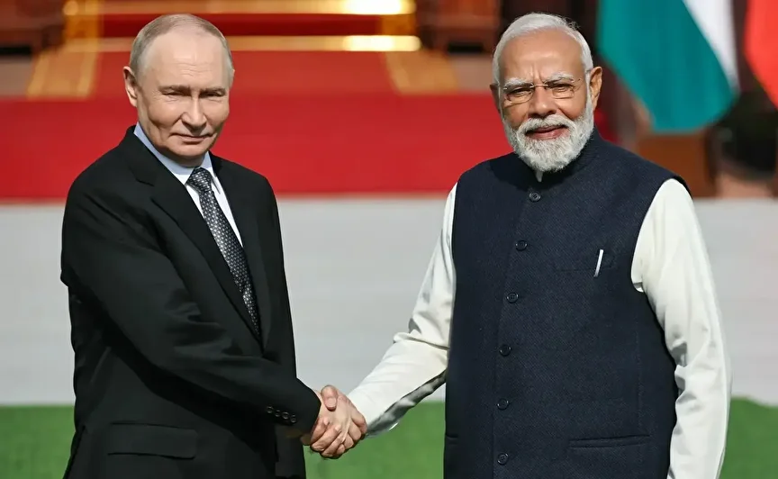 Rusya Devlet Başkanı Vladimir Putin, Hindistan’ın başkenti Yeni Delhi’ye dün akşam saatlerinde ulaştı. Resmi temaslarına bugün başlayan Rus lider, atlı muhafızların eşliğinde top atışlarıyla Cumhurbaşkanlığı Sarayı’na geldi. Putin, Hindistan Başbakanı Narendra Modi ve Cumhurbaşkanı Droupadi Murmu tarafından resmi törenle karşılandı. İki ülke marşlarının çalındığı törenin ardından Putin, Mahatma Gandhi Anıtını ziyaret etti. Anıta çelenk bırakan Putin daha sonra Haydarabad Sarayı’nda Modi ile bir araya geldi.