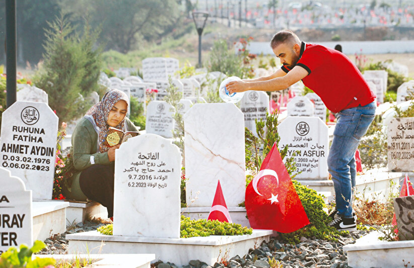 - Hatay'ın Antakya ilçesinde 6 Şubat 2023'teki afette yakınlarını kaybedenler, Kurban Bayramı'nın ilk gününde Narlıca Deprem Mezarlığı'nı ziyaret etti. Sabahın erken saatlerinde mezarlığa gidenler, yakınlarının kabirlerini suladı, çiçek bıraktı. Kur'an-ı Kerim okuyan ziyaretçiler, dua etti. Bazı vatandaşların gözyaşı döktüğü ziyarette depremzedeler birbirleriyle bayramlaştı. Ziyaretçilerden 70 yaşındaki Cemile Keleş, bayramı buruk geçirdiğini dile getirerek, “Kızım çiçek gibiydi. Onun için mezarına çiçek ekiyorum. Yapacak bir şey yok. Evlatlar hiç unutulmaz” diye konuştu.