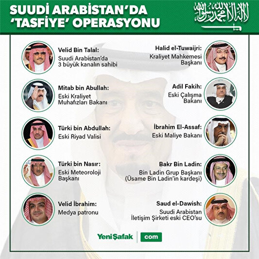 Operasyonlarda gözaltına alınan kişiler arasında Kraliyet Muhafızları Bakanı Prens Mutab bin Abdullah ve milyarder iş adamı Prens Velid bin Talal gibi çok sayıda prens, bakan ve iş adamı vardı.