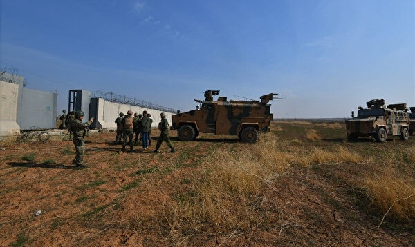 Derbesiye bölgesinde icra edilen 6'ncı kara devriyesine her iki taraftan 4'er araç olmak üzere toplam 8 kara aracı ve İHA'lar iştirak etti.