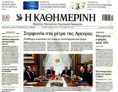 Gün boyunca Türkiye'nin ABD ile müzakere sürecini izleyen Yunan yayın organları, müzakerelerin sonunda "Türkiye'nin istediği sonuçları elde ettiği" görüşünde birleştiler."Türkiyenin ölçülerine göre anlaşma" başlığını manşete taşıyan Kathimerini gazetesi, ABD Başkan Yardımcısı Mike Pence ile Dışişleri Bakanı Mike Pompeo'nun Ankara'da soğuk karşılanmalarına rağmen, Türkiye'nin Suriye'nin kuzeyinde güvenli bölge oluşturulması konusundaki taleplerini kabul ettiklerini yazdı.