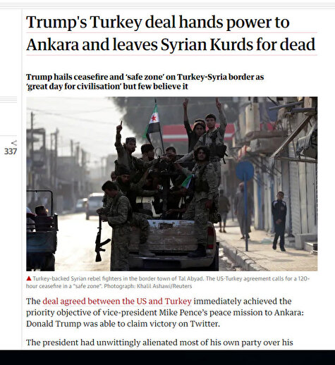 İngiliz The Guardian gazetesinde "Trump'ın Türkiye ile anlaşması Ankara'ya güç kazandırdı" ifadeleri kullanıldı.