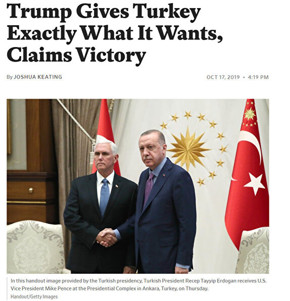 ABD'li internet sitesi The Slate haberinde "Trump Türkiye'ye istediği her şeyi vererek zafer ilan etti" denildi.