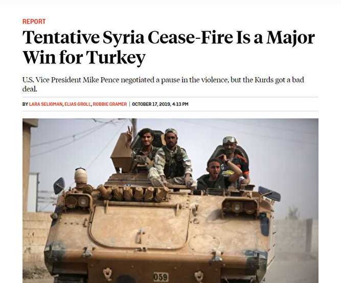 Türkiye ve ABD arasında dün gerçekleştirilen görüşmelerin ardından varılan uzlaşma dünya medyasında geniş yer aldı. Foreign Policy dergisinde haber "Belirsiz Suriye anlaşması Türkiye için büyük zafer" başlığı kullanıldı.