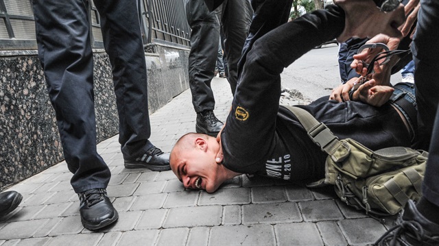 Büyükelçilik önünde seçim işlemlerinin yapılmasına karşı olan bir grup, büyükelçilik etrafında güvenlik amaçlı konulan engeli aşmaya çalıştı. Bunun üzerine güvenlik güçleri ile gruptakiler arasında arbede çıktı. Rus vatandaşı olduğu ve oy kullanmaya geldiği belirtilen bir kişinin bir protestocu tarafından tartaklandığı görüldü. Güvenlik güçleri 2 protestocuyu gözaltına aldı. Grubun eylemlerini arttırması ve seçmenlerin büyükelçiliğe girmesini engellemeye çalışması üzerine bina çevresindeki güvenlik güçlerinin sayısı arttırıldı.