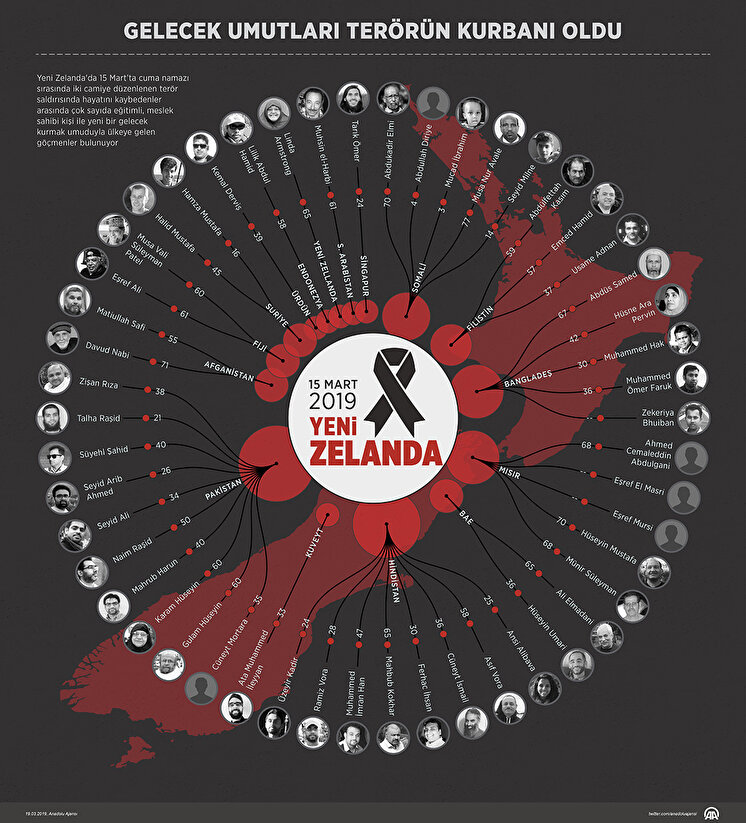 Yeni Zelanda'nın Christchurch kentindeki Al Noor ve Linwood camilerine 15 Mart Cuma günü yapılan terör saldırısında 50 kişi hayatını kaybetmiş 50 kişi de yaralanmıştı.
