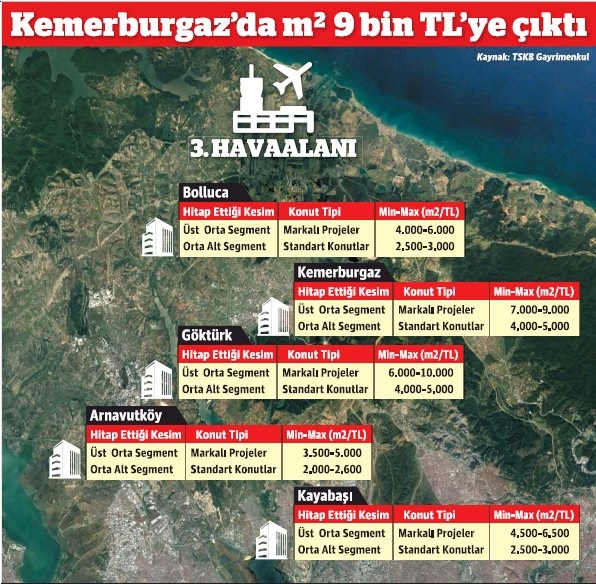3. Havalimanı’nın açılış tarihi 29 Ekim olarak belirlendi. Tarih yaklaştıkça havalimanı çalışanlarının yerleşim telaşı da başladı. Bölgede en fazla talep havalimanına 15 dakika mesafedeki Göktürk ve Kemerburgaz’da oldu.