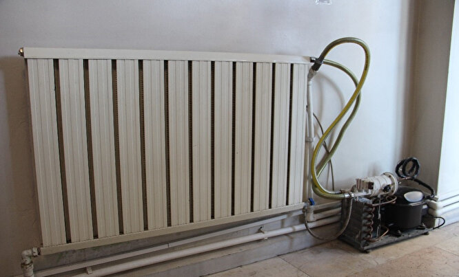 Atölyesinde Konya’dan getirttirmiş olduğu petek üzerinde tasarlamış olduğu bir başka sistemi uygulamalı olarak anlatan Taşbaşı, sulu sistem olarak da tasarlamış olduğu peteğin su devridaimi ile yazın serinliyor, kışın ise ısınıyor.