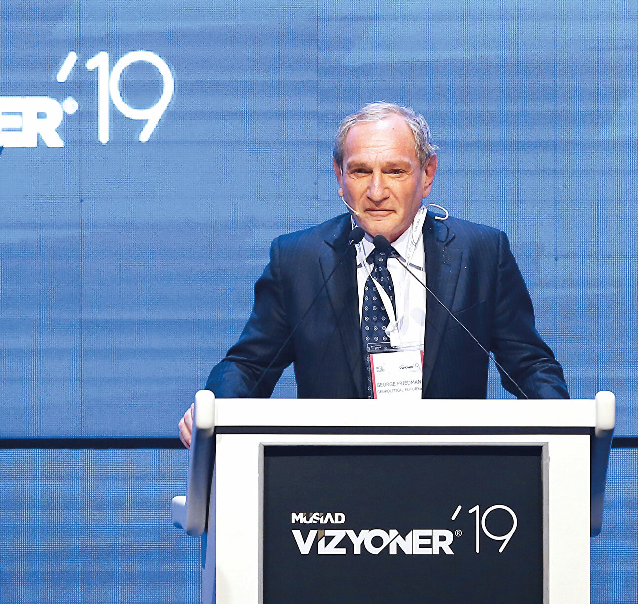 - Geopolitical Futures Kurucu Başkanı ve siyaset bilimci George Friedman ise Türkiye’yi 10 yıl öncesiyle kıyasladı. MÜSİAD Vizyoner’in öğleden önceki oturumunda konuşan Friedman, “10 yıl sonra bugün çok farklı bir Türkiye ile karşı karşıyayız. Türkiye şimdi kendi sınırlarının güvenliğini sağlıyor. Türkiye kendi potansiyel müttefiklerini seçiyor. Türkiye, 10 yıl önce kendine güveni olmayan bir ülkeydi. Cumhurbaşkanı Erdoğan, Türkiye'nin kendine olan öz güvenini inşa etmeye çalışıyor” dedi. Türkiye gibi ülkelerin Orta Doğu'da sorumluluğunun artmasını beklediklerini ifade eden Friedman, “Aksi takdirde bölge kaos halinde kalacak. F-35 ve S-400 gibi geçici sorunları bir kenara bırakırsak Türkiye ile ABD arasında uzun vadede pek çok alanda ortak iş birliği yapılabilir. Eğer Türkiye dijital bir güç olmak istiyorsa aynı zamanda politik ve askeri bir güç olmak zorunda” dedi.