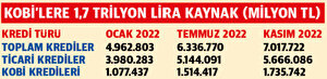 "Bankacılık sektörünün kredi hacmi ekim sonu itibarıyla yıllık yüzde 68,2 artarken aynı dönemde ticari kredi büyümesiyse yüzde 74,9 seviyesinde gerçekleşmiştir. Ekonomimizin bel kemiği olan ve milyonlarca insanımıza istihdam sağlamaya devam eden KOBİ'lerimizin de kredilere kolay erişimini önemsiyor ve önceliklendiriyoruz. Bu yaklaşımımızın bir sonucu olarak KOBİ kredileri, tarihsel ortalamasının 3 katından daha fazla büyümüştür. Küresel resesyon beklentilerine rağmen ekonomik canlılığımızı sürdürülebilir kılmak için ihtiyatlı teşvik politikalarını uygulamaya devam edeceğiz."